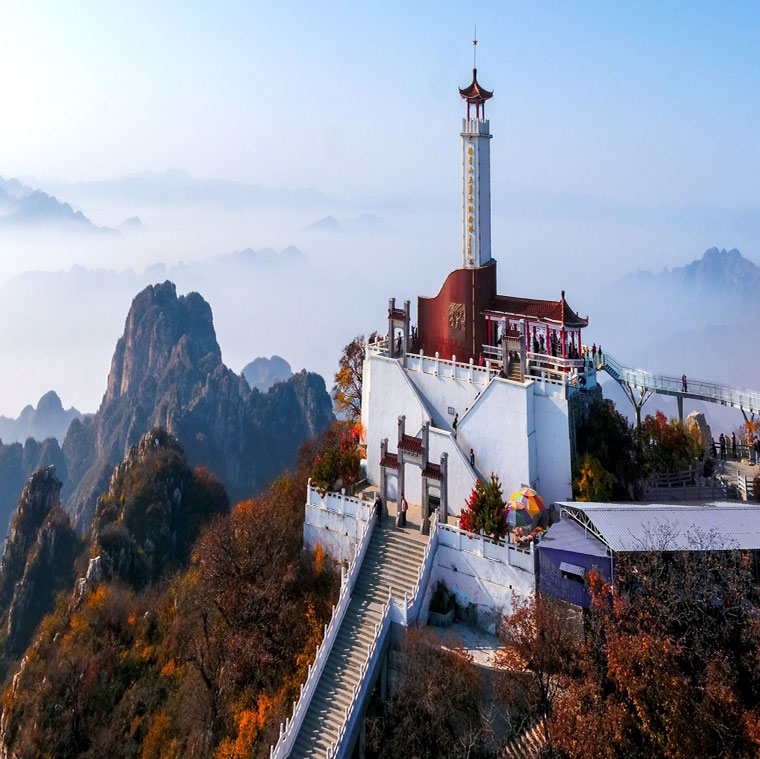 這是狼牙山棋盤陀峰頂?shù)摹袄茄郎轿逵率考o念塔”(2017年10月27日無人機拍攝)。新華社 發(fā)