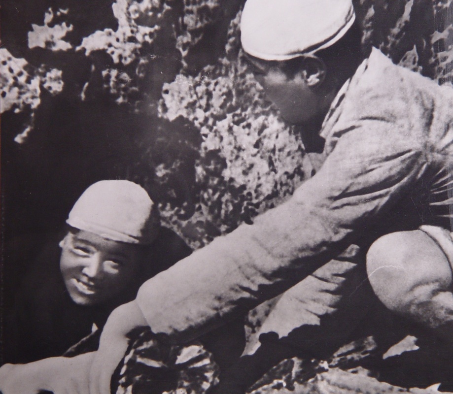 和戰(zhàn)友一起燒炭的張思德(左)(資料照片)。新華社發(fā)