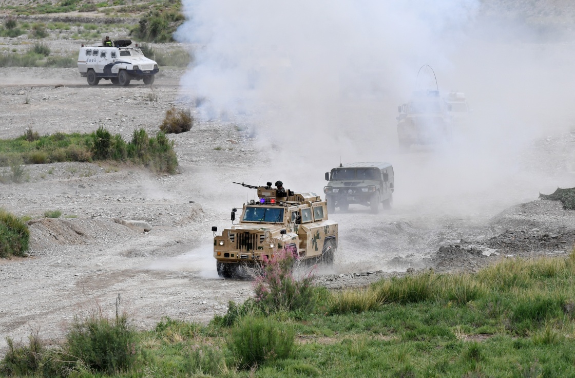 2017年6月27日,代號(hào)為“天山-3號(hào)(2017)”的上海合作組織成員國中吉邊防部門聯(lián)合反恐演習(xí)在中吉兩國邊境同時(shí)打響。王菲 攝