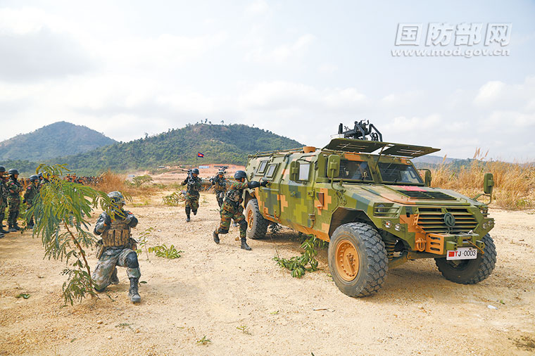 3月17日,“金龍-2020”中柬兩軍聯(lián)合訓(xùn)練進(jìn)入混編同訓(xùn)階段,中柬雙方互派教員,對(duì)9個(gè)訓(xùn)練課目進(jìn)行教學(xué),為綜合演練打下堅(jiān)實(shí)基礎(chǔ)。圖為中柬兩軍混合編組,進(jìn)行登車協(xié)同訓(xùn)練。崔淞柔 攝