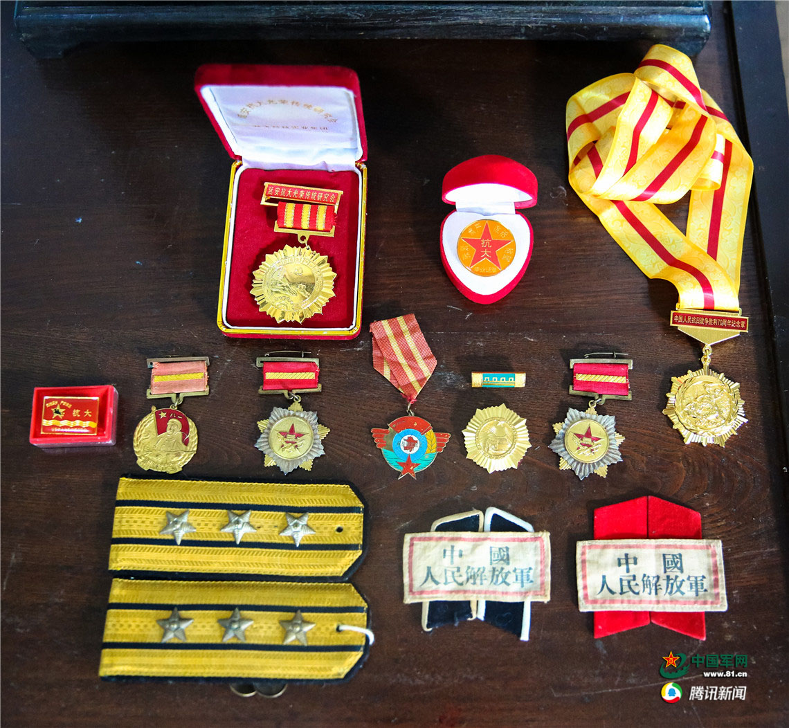 孫世友的功勛章等物件,有的功勛章他送給了孫子作紀(jì)念。中國軍網(wǎng)記者孫智英 攝(2019年8月9日攝)