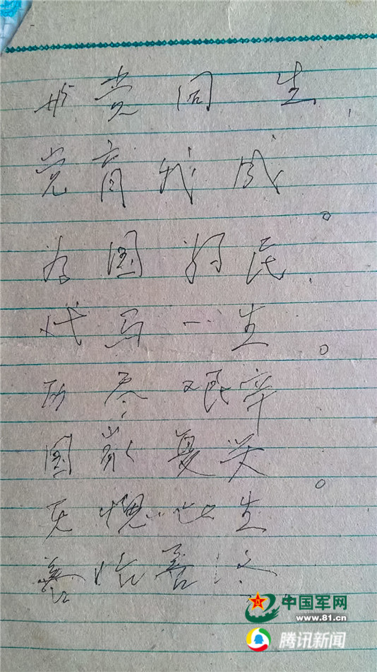 采訪回來,孫世友老人的兒子給我們傳來一張照片,照片上是孫老在今年八一建軍節(jié)當(dāng)天手寫的一首詩: