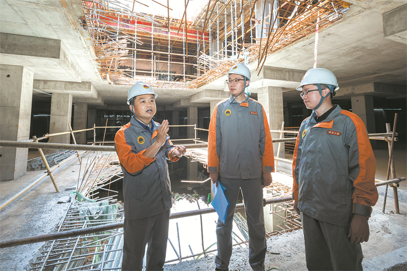 在江北新區(qū)中心區(qū)地下空間項(xiàng)目建設(shè)現(xiàn)場(chǎng),人防部門工作人員檢查防護(hù)工程建設(shè)質(zhì)量。石 偉攝