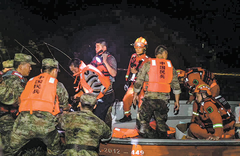 7月5日晚,岳陽軍分區(qū)組織民兵搜救被困群眾。陳 靜攝