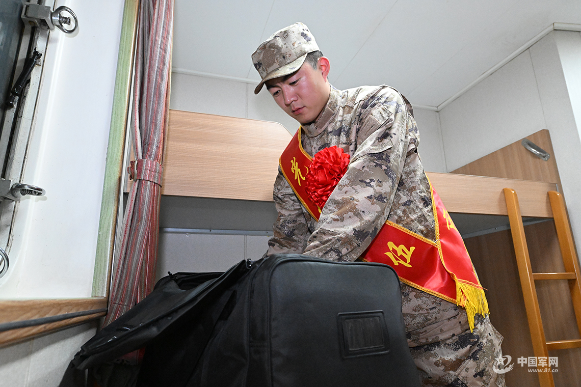 預(yù)定新兵李金城正在整理背囊。(孫卓文 攝)