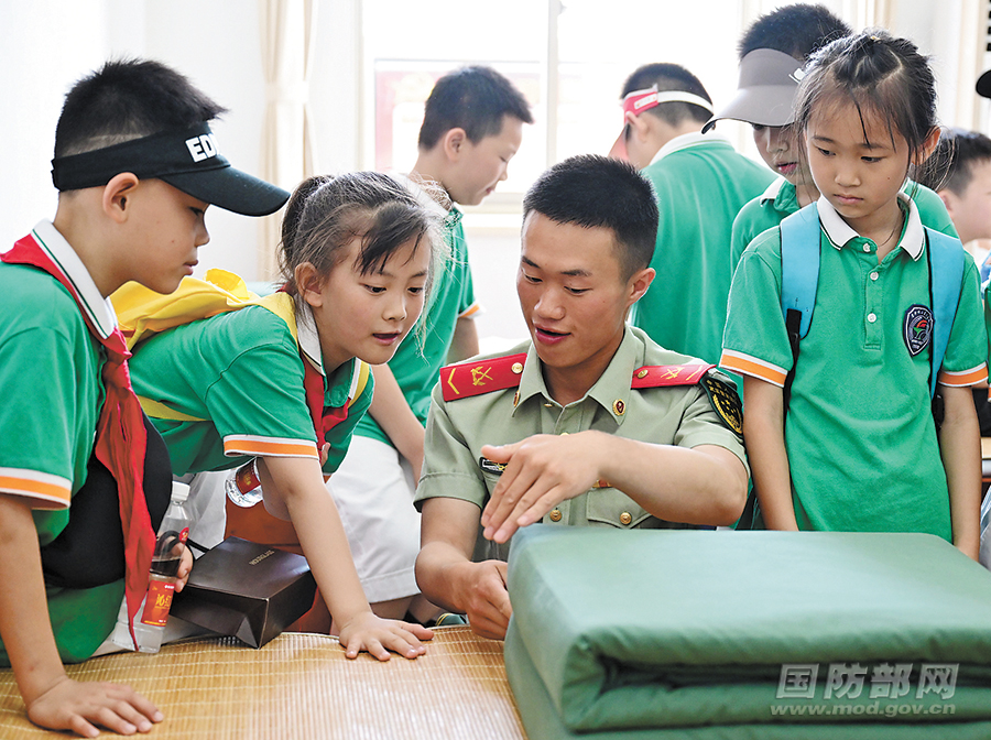 “六一”國(guó)際兒童節(jié)到來(lái)之際,武警南昌支隊(duì)某部組織軍營(yíng)開放日活動(dòng)。圖為學(xué)生觀看戰(zhàn)士整理內(nèi)務(wù)。 許書燦 攝