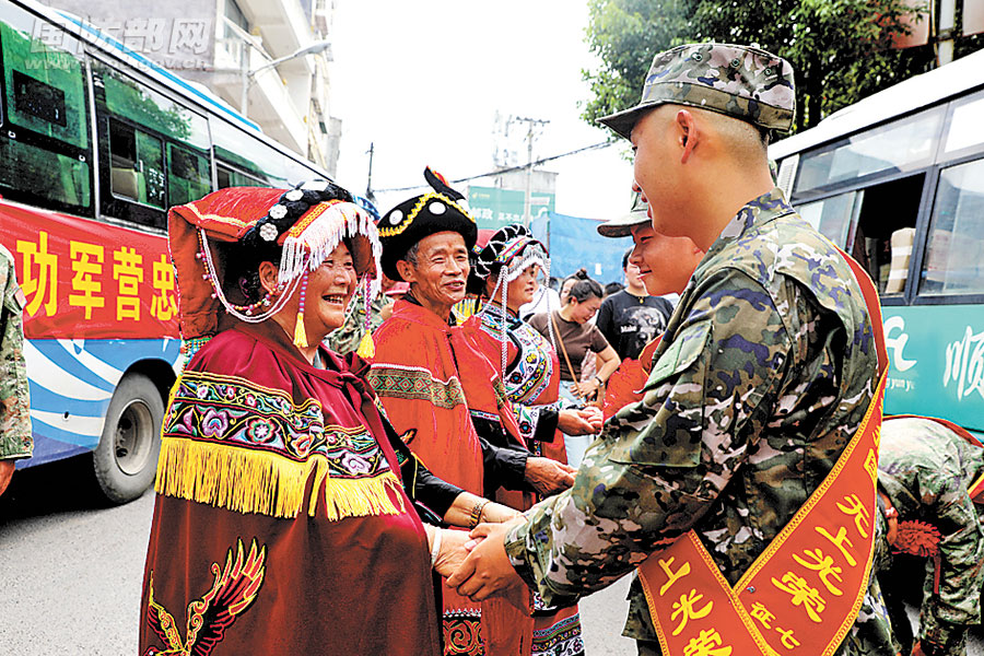 9月17日,恰逢中秋佳節(jié),貴州省畢節(jié)市七星關(guān)區(qū)少數(shù)民族群眾來到送兵現(xiàn)場(chǎng)歡送新兵。張忠應(yīng) 攝