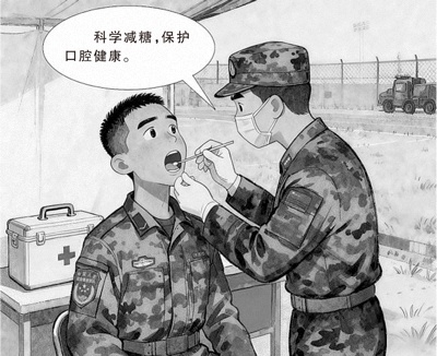 做好飲食管理。建議戰(zhàn)友們?cè)谌粘I钪杏幸庾R(shí)地減少高糖食物(如糖果、蛋糕、餅干)和酸性飲料(如碳酸飲料、果汁)的攝入量和攝入次數(shù)。補(bǔ)充水分時(shí)建議飲用白開水、無糖茶或無糖蘇打水,少飲用含糖飲料。避免在兩餐之間或睡前頻繁進(jìn)食甜食,以免口腔長(zhǎng)時(shí)間處于酸性狀態(tài)。