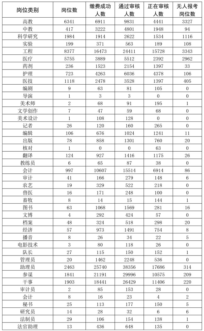 2.截至1月16日17時(shí)各崗位類(lèi)別報(bào)考情況統(tǒng)計(jì)表
