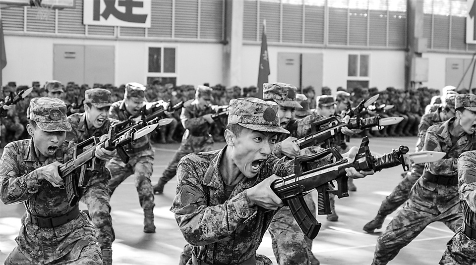 火箭軍工程大學(xué)新學(xué)員刺殺會(huì)操。馮敬開 攝