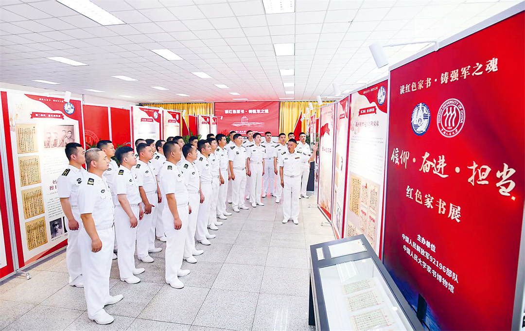 炎炎夏日,海軍某潛艇支隊(duì)舉辦廉政家書展。一封封革命前輩的紅色家書,一張張寫自大洋深處的信箋,吸引官兵細(xì)細(xì)品讀、久久沉思。