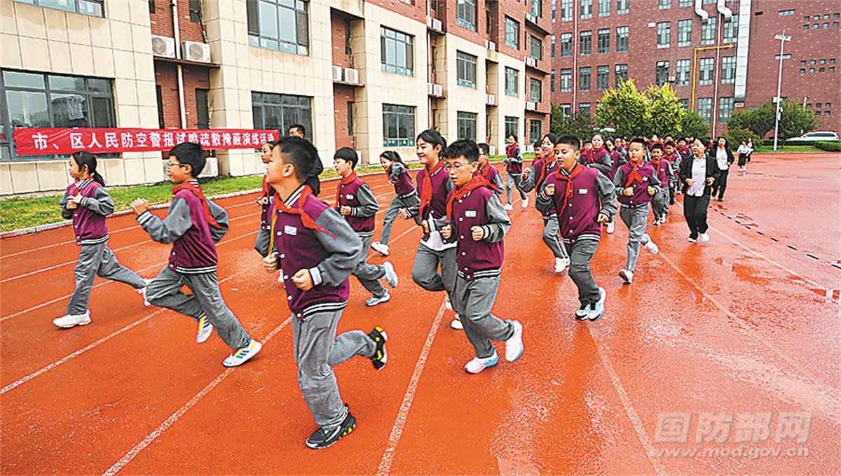 山西省晉中市國(guó)動(dòng)辦組織學(xué)生參加防空疏散掩蔽訓(xùn)練。李 楓攝