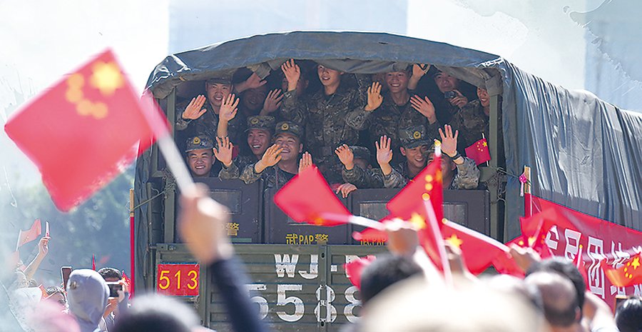 經(jīng)過10余天連續(xù)奮戰(zhàn),武警官兵和其他救援力量筑起一道道護佑生命的鋼鐵防線,用行動深刻詮釋了“人民軍隊為人民”的誓言。