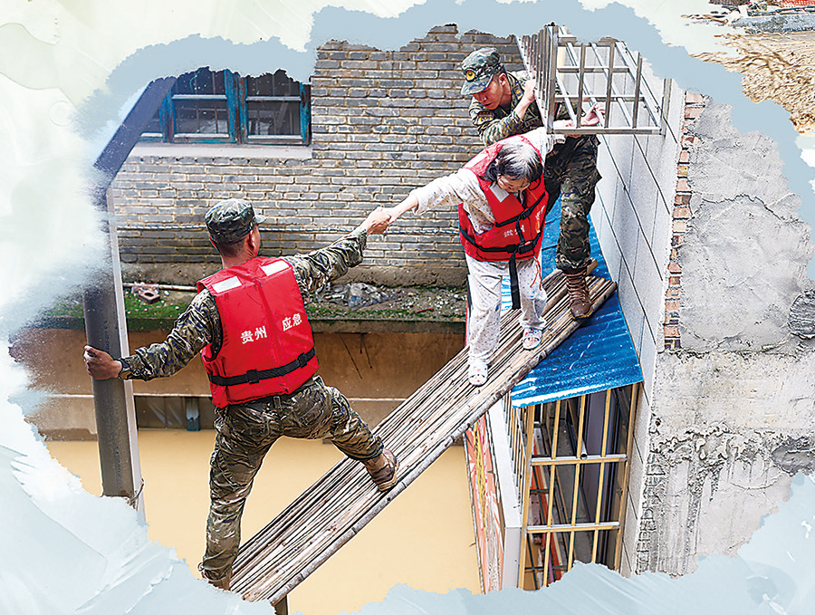 6月24日,武警貴州總隊官兵疏散轉(zhuǎn)移受災(zāi)群眾。張 洋攝