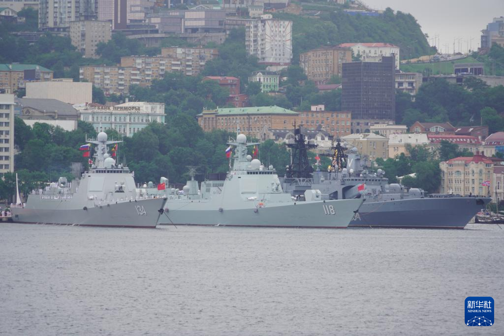 這是7月31日在俄羅斯符拉迪沃斯托克某軍港拍攝的參加中俄“海上聯(lián)合-2025”聯(lián)合演習(xí)的中俄雙方部分參演艦艇。新華社記者 李揚揚 攝