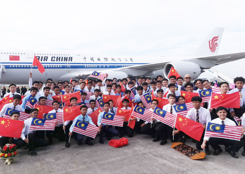馬來西亞青年載歌載舞,當?shù)刂匈Y企業(yè)人員、留學生和華僑華人聚集在道路兩旁揮舞中馬兩國國旗,熱烈祝賀習近平訪問馬來西亞取得圓滿成功。