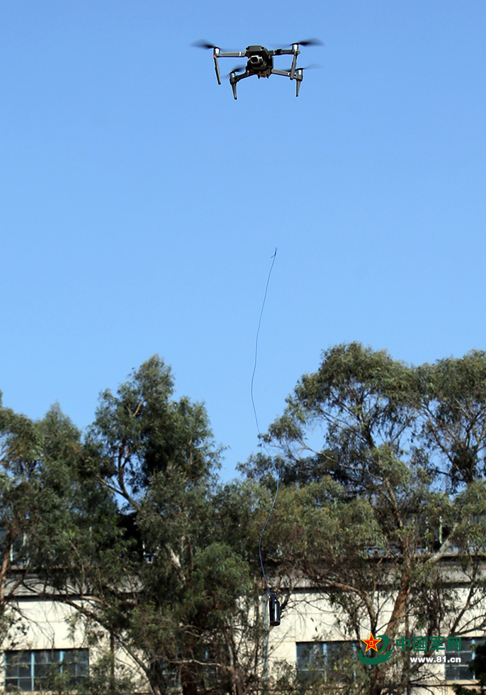 偵察隊(duì)員操作無(wú)人機(jī)掛載模擬彈,進(jìn)行投彈訓(xùn)練。胡程 攝