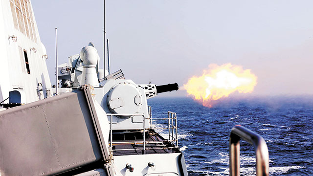 海軍某支隊艦艇實施副炮射擊訓(xùn)練