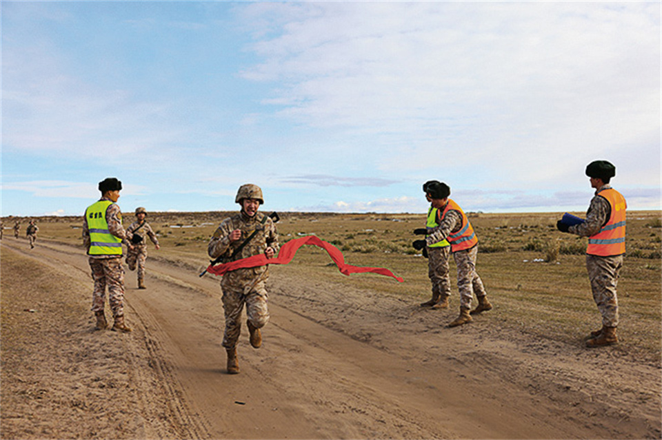 比武中,參賽官兵陸續(xù)抵達5公里武裝越野終點。李朋儒 攝