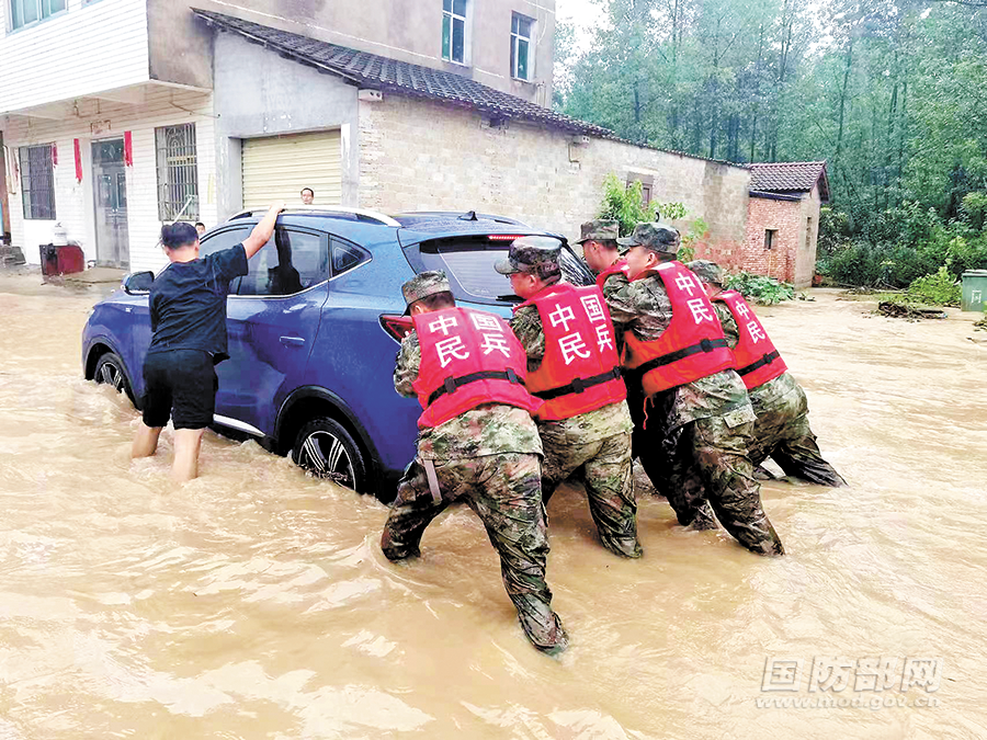 6月22日,咸寧軍分區(qū)組織民兵轉(zhuǎn)移被困車輛。崔建華攝