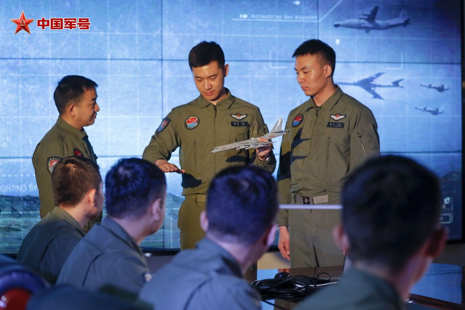 轟6-K飛行員正在針對訓(xùn)練情況進(jìn)行復(fù)盤總結(jié)(龍小康 攝)