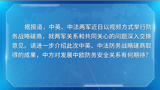 中方歷來重視與歐洲國家的軍事交流與合作,希望中歐防務部門不斷加強各領域溝通協(xié)作,共同維護真正多邊主義,共同維護地區(qū)和平穩(wěn)定。