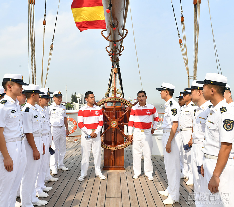 吳謙:9月18日至22日,秘魯海軍“聯(lián)合”號風帆訓練艦訪問上海。期間,中秘兩國海軍官兵開展了專業(yè)技術交流、相互參觀艦艇、文化體育比賽等活動。