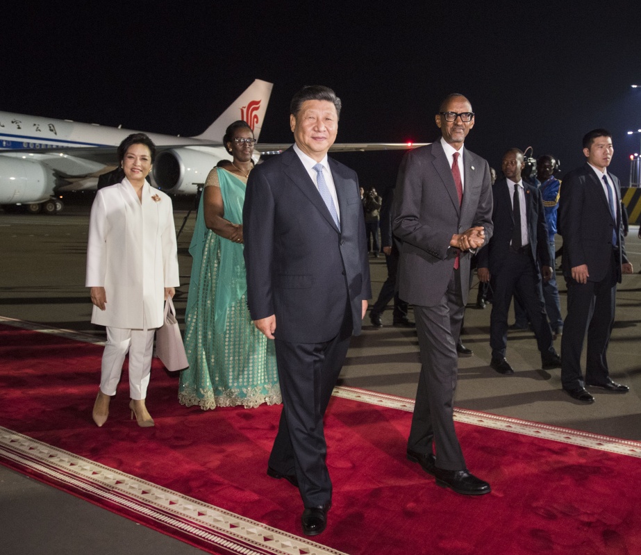 習(xí)近平是在結(jié)束對塞內(nèi)加爾國事訪問后抵達基加利的。離開達喀爾時,習(xí)近平出席塞內(nèi)加爾總統(tǒng)薩勒在機場舉行的歡送儀式。習(xí)近平和彭麗媛抵達機場時,薩勒和夫人瑪麗梅在停車處迎接。兩國元首夫婦一同前往停機坪。兩國元首登上檢閱臺。軍樂隊奏中塞兩國國歌。習(xí)近平在薩勒陪同下檢閱儀仗隊。習(xí)近平和彭麗媛同塞方送行人員道別。薩勒夫婦同中方陪同人員道別。