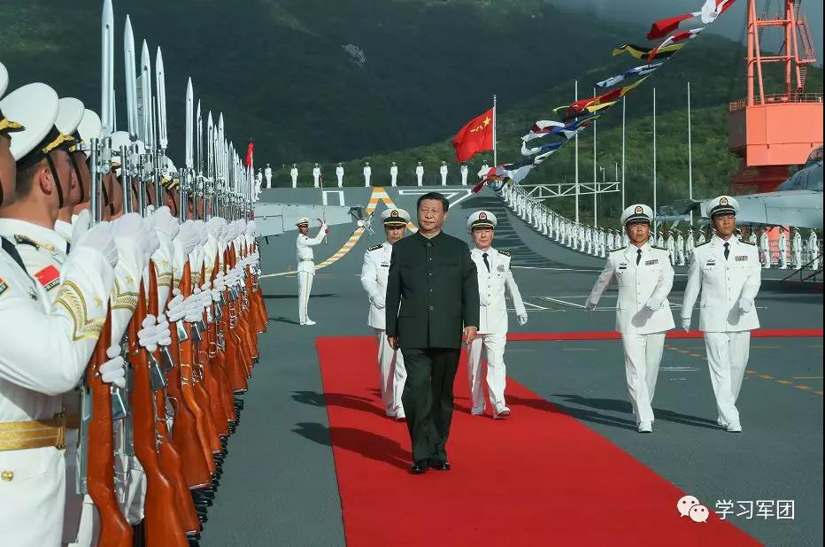 12月17日,我國第一艘國產(chǎn)航空母艦山東艦在海南三亞某軍港交付海軍。中共中央總書記、國家主席、中央軍委主席習(xí)近平出席交接入列儀式并登艦視察。這是儀式結(jié)束后,習(xí)近平登上山東艦,檢閱儀仗隊。