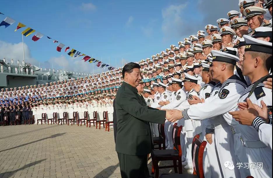 12月17日,我國第一艘國產(chǎn)航空母艦山東艦在海南三亞某軍港交付海軍。中共中央總書記、國家主席、中央軍委主席習(xí)近平出席交接入列儀式并登艦視察。這是習(xí)近平親切接見航母部隊官兵代表和航母建設(shè)單位代表。