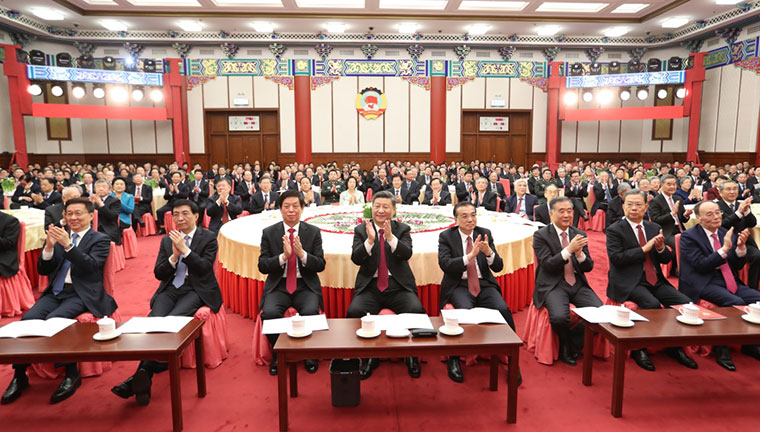 茶話會上,習近平等來到各界人士中間,同大家親切握手,互致問候。部分全國政協(xié)委員和文藝工作者表演了精彩的節(jié)目。最后,全場起立高唱《團結就是力量》,會場內(nèi)洋溢著喜慶祥和的節(jié)日氣氛。