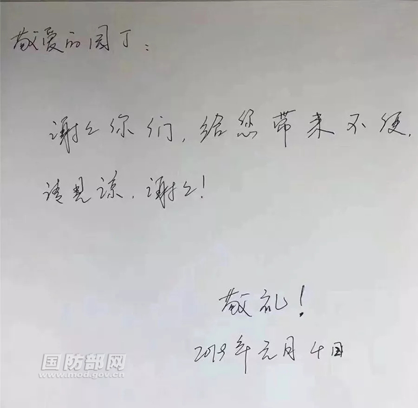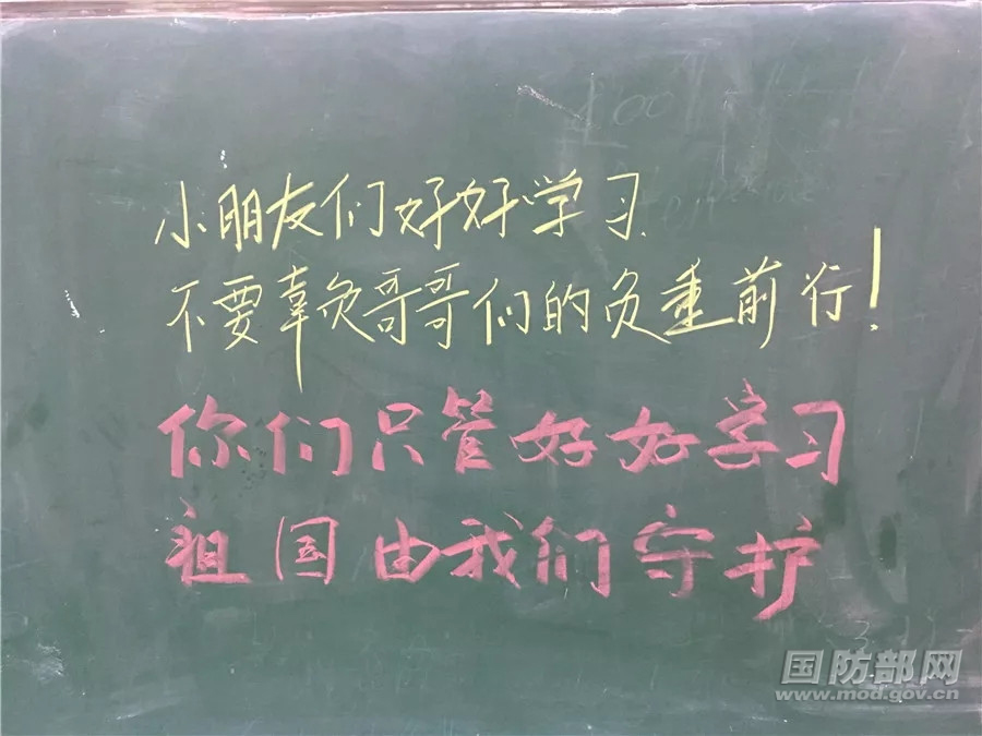 燃爆朋友圈的“主角”是武警某支隊(duì)官兵。在黑板上寫(xiě)下“小朋友們好好學(xué)習(xí),不要辜負(fù)哥哥們的負(fù)重前行!你們只管好好學(xué)習(xí),祖國(guó)由我們守護(hù)”留言的是中隊(duì)文書(shū)段文欽;留下二十元買(mǎi)水錢(qián)的是中隊(duì)指導(dǎo)員黃夢(mèng)濤;在白紙上寫(xiě)下“敬愛(ài)的園丁,謝謝你們,給您帶來(lái)不便,請(qǐng)見(jiàn)諒,謝謝”的是該部參謀吳建平。
