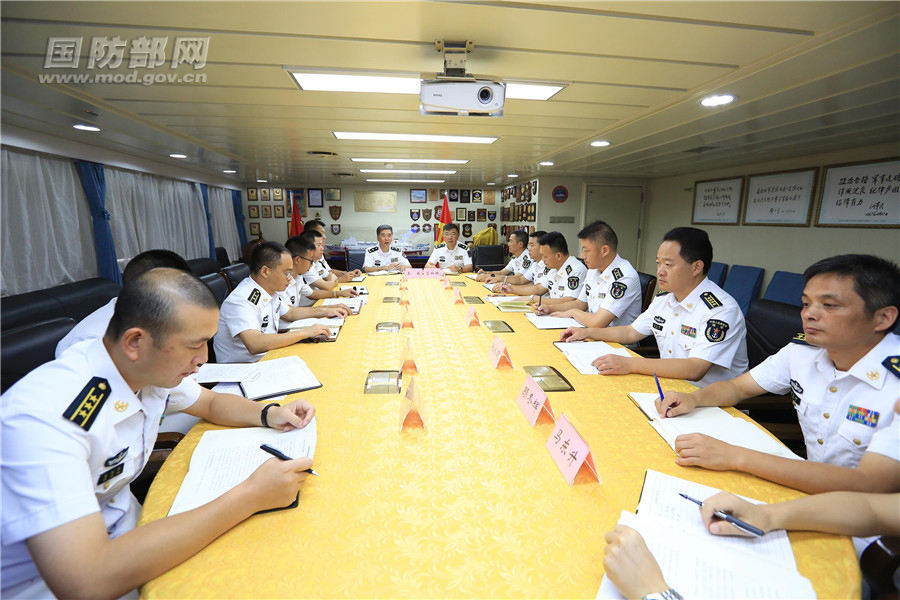 旗幟引領(lǐng)方向,思想照亮航程?!昂椭C使命-2018”任務(wù)臨時(shí)黨委始終堅(jiān)持以習(xí)近平新時(shí)代中國(guó)特色社會(huì)主義思想為指導(dǎo),深入貫徹習(xí)近平強(qiáng)軍思想,用全面建成世界一流海軍的偉大號(hào)召引領(lǐng)方向、凝聚力量。