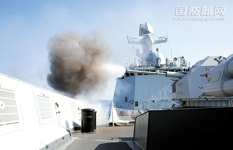 訓(xùn)練中,許昌艦火炮進(jìn)行射擊。吳亢慈 攝