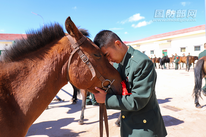 騎兵連退伍老兵與軍馬告別。