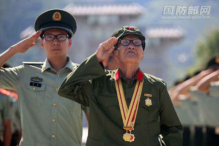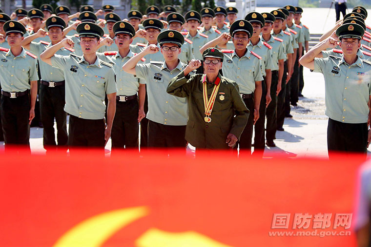 老紅軍王召書與武警官兵重溫入黨誓詞。