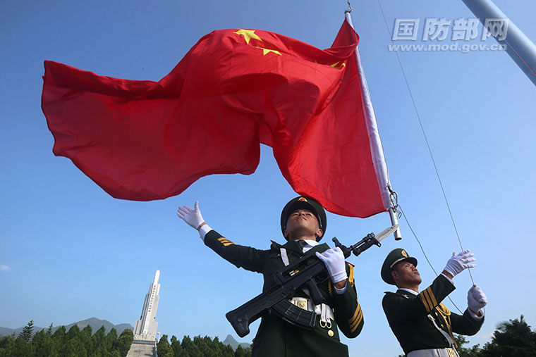 伴隨著莊嚴(yán)的國歌,五星紅旗冉冉升起。