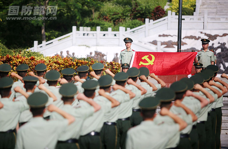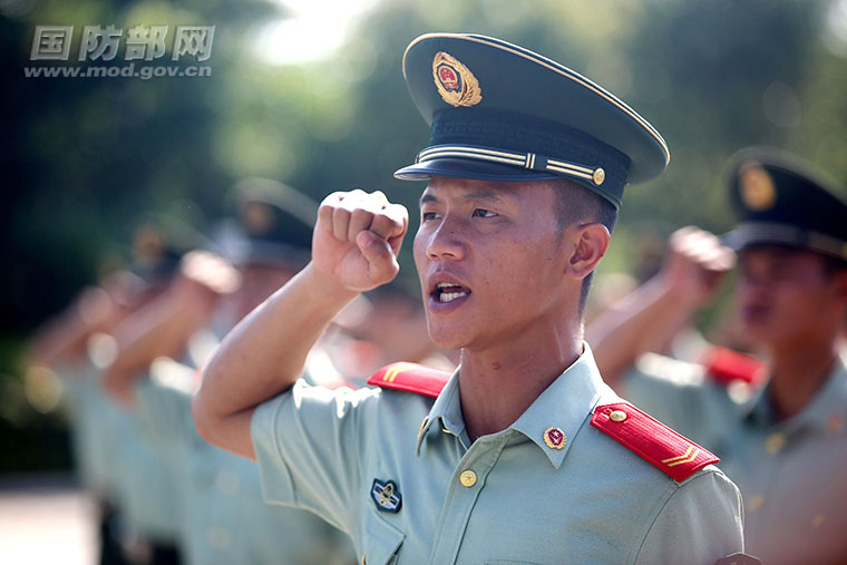 面對黨旗,武警官兵莊嚴(yán)宣誓。