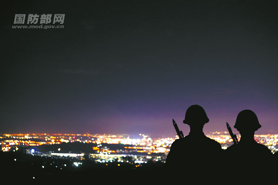 夜深邃,山下遠(yuǎn)方,霓虹如星閃爍,輝映著山上忠誠守望的身影。劉 暢攝