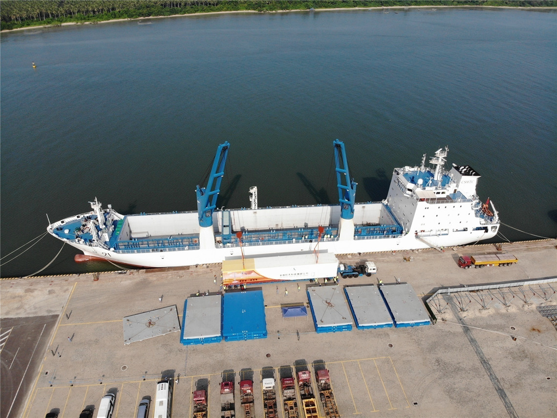 吊裝過程中的火箭運(yùn)輸船。亓創(chuàng) 攝