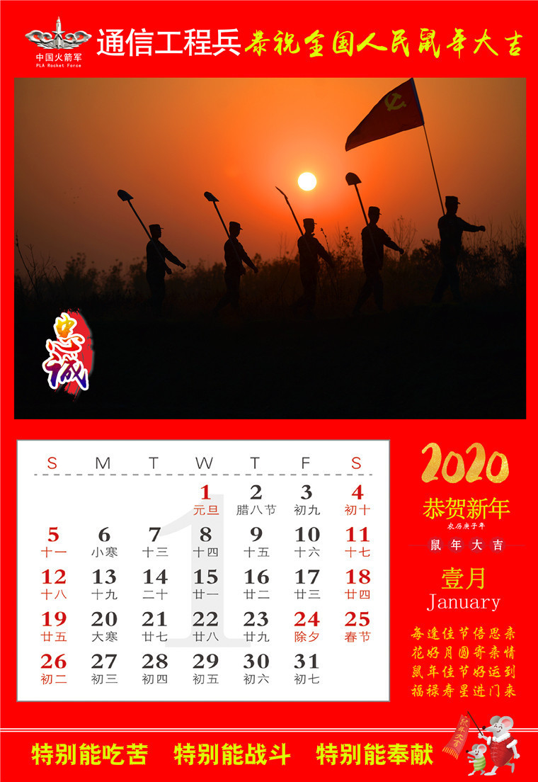 送大家一份中國火箭軍通信工程兵2020年特色掛歷