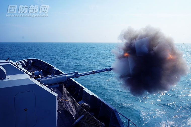 “方位xx,距離xx,發(fā)現(xiàn)目標(biāo),主炮做好射擊準(zhǔn)備?!彪S著指揮員下達(dá)作戰(zhàn)指令,擔(dān)負(fù)射擊任務(wù)的官兵魚(yú)貫而出、奔向戰(zhàn)位,頓時(shí)雷達(dá)飛旋、艦炮速轉(zhuǎn),目指信息通過(guò)指控系統(tǒng)迅速傳達(dá)艦炮設(shè)備室。隨即,一發(fā)發(fā)炮彈迸發(fā)出低沉的怒吼,對(duì)海上目標(biāo)實(shí)施精確打擊。