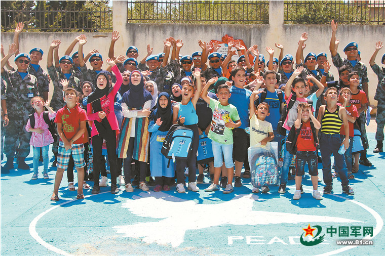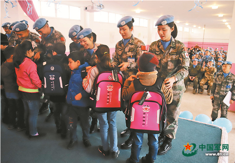 維和官兵為貧困學(xué)生捐贈學(xué)習(xí)用品。