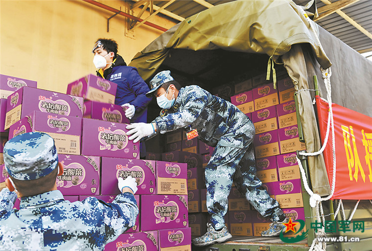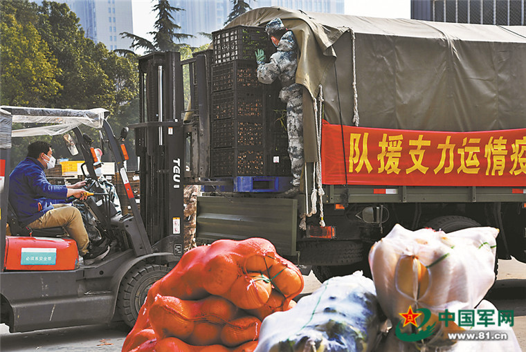 經(jīng)報中央軍委批準(zhǔn),湖北省軍區(qū)協(xié)調(diào)駐鄂部隊抽組成立抗擊疫情運力支援隊,擔(dān)任疫情防控期間武漢市生活物資的網(wǎng)點運輸保障任務(wù)。