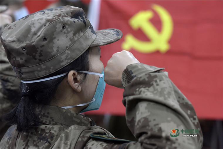 2月1日,陸軍軍醫(yī)大學(xué)醫(yī)療隊充分發(fā)揮黨組織戰(zhàn)斗堡壘作用,為沖鋒在戰(zhàn)“疫”一線的醫(yī)療隊隊員舉行了一次特別的入黨儀式,鼓舞醫(yī)療隊隊員以更加高昂的的斗志投身疫情防控斗爭。解放軍報記者 范顯海 攝