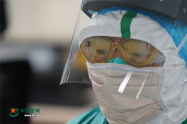 海軍軍醫(yī)大學(xué)醫(yī)療隊員在戴口罩。新華社記者肖藝九攝