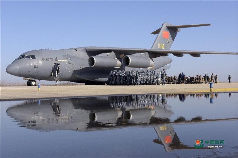 2月2日,空軍出動8架大型運輸機空運軍隊支援湖北醫(yī)療隊抵達武漢天河機場。解放軍報記者 范顯海 攝