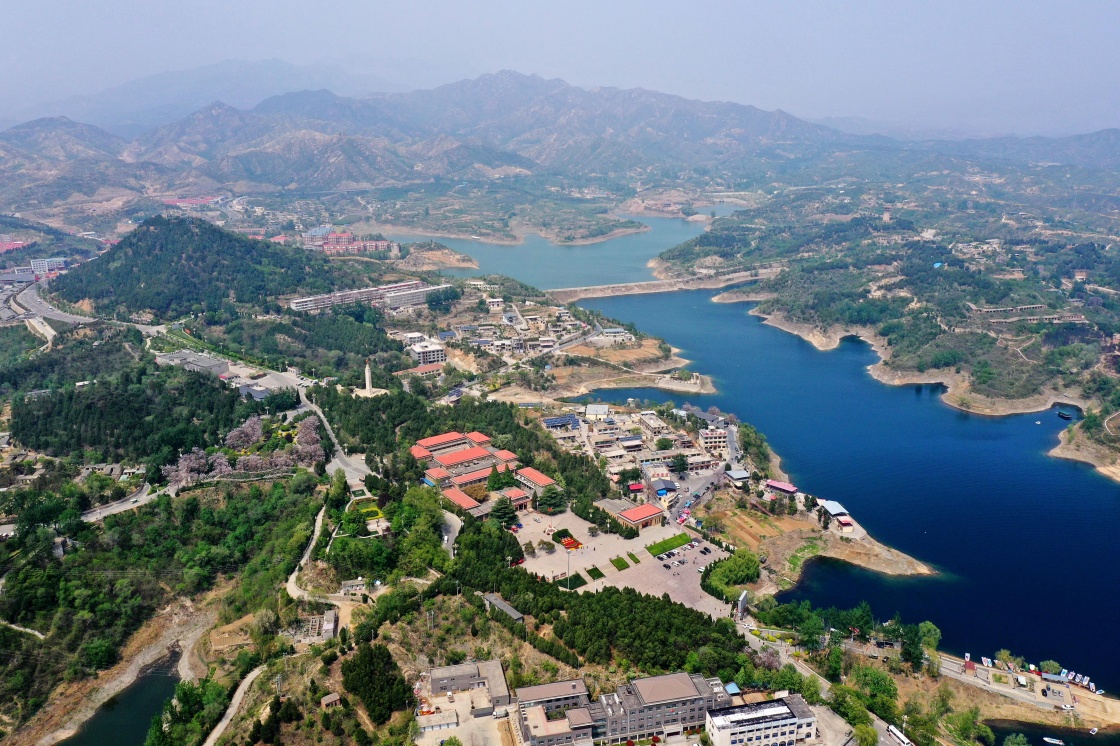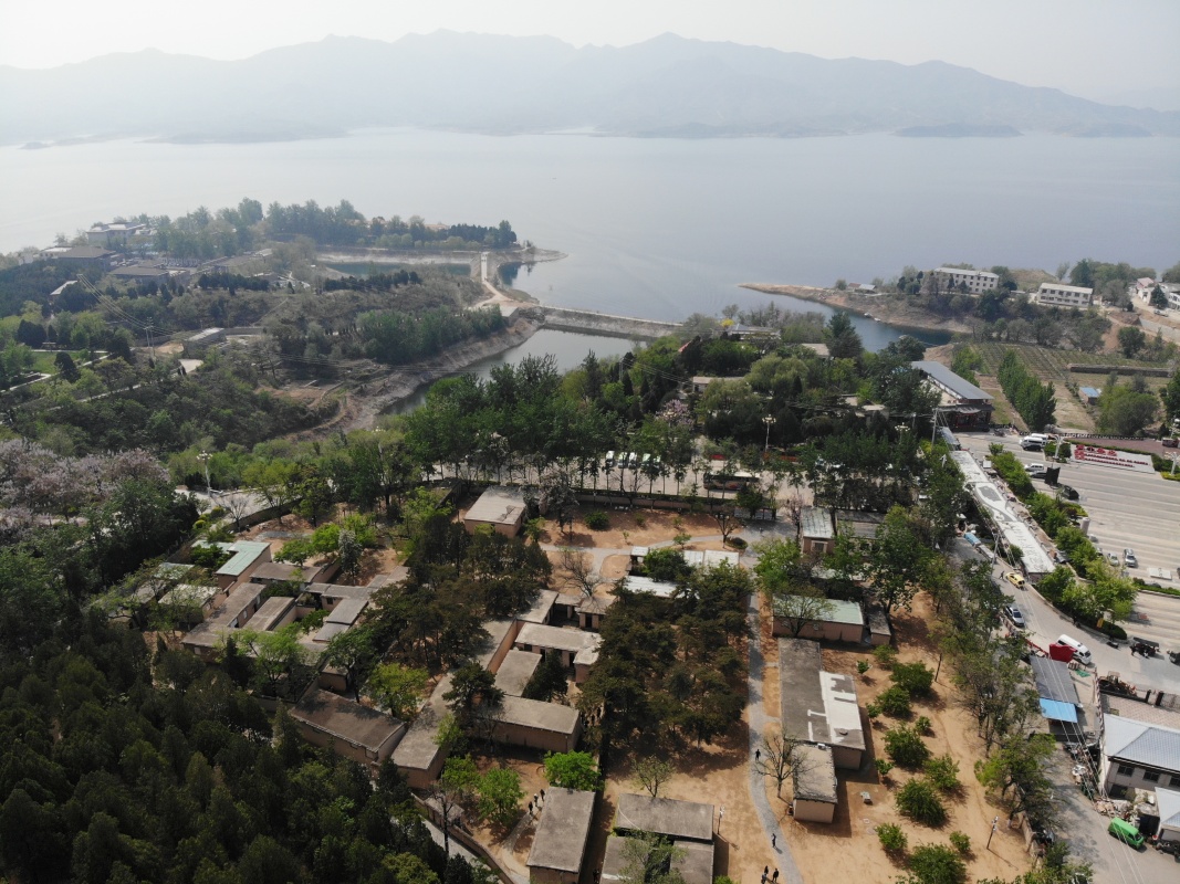2021年4月27日拍攝的位于河北省平山縣的中央統(tǒng)戰(zhàn)部舊址,遠(yuǎn)處為崗南水庫(無人機(jī)照片)。新華社記者 李夢(mèng)嬌 攝