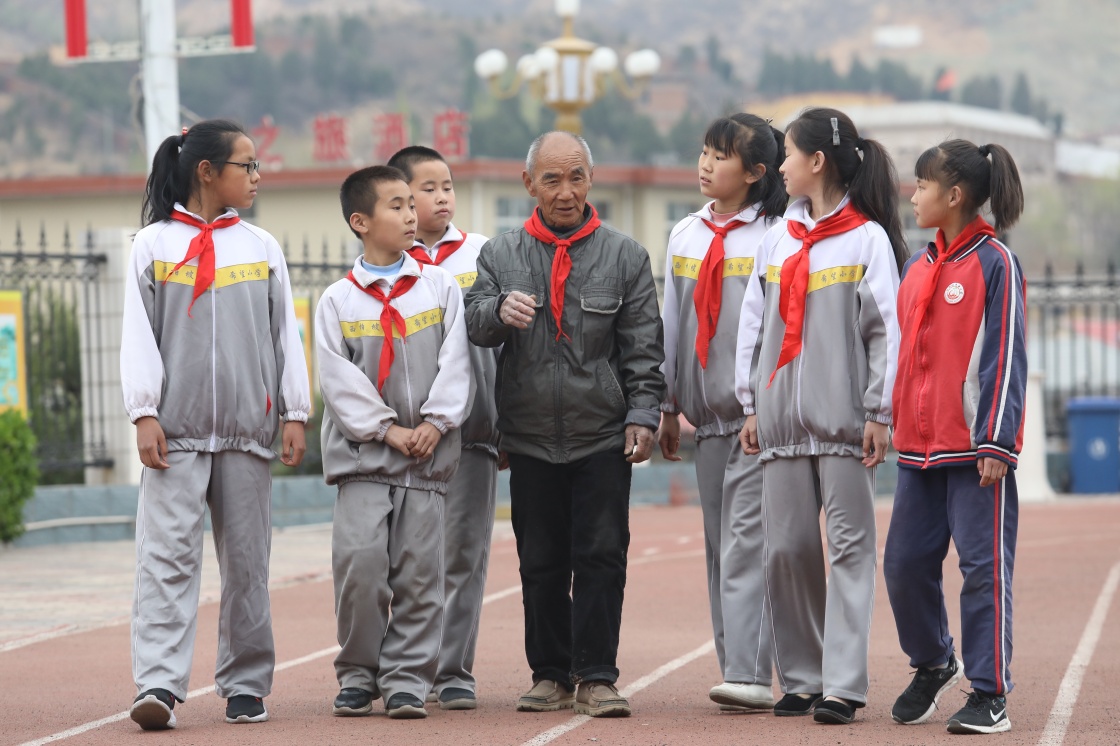 閆青海(中)給孩子們講奮斗創(chuàng)業(yè)的故事(2019年4月8日攝)。閆青海曾作為西柏坡黨員代表受到中央領(lǐng)導(dǎo)同志接見,是媒體采訪的熱點(diǎn)人物,村民們都形象地稱他為西柏坡的“代言人”。新華社發(fā)(梁子棟 攝)
