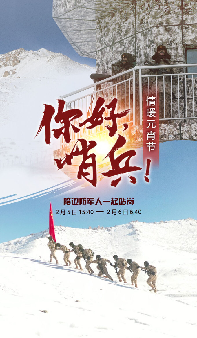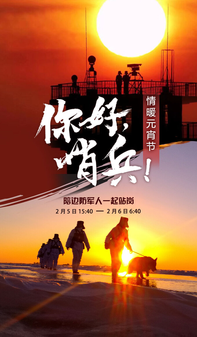 2月5日15:40-2月6日06:40,歡迎您登錄中國軍號抖音、快手、百家號、微博等新媒體平臺,中國軍網(wǎng)、中國軍視網(wǎng)客戶端、微博、抖音、快手等新媒體平臺,參與觀看“你好哨兵·情暖元宵節(jié)”直播活動。